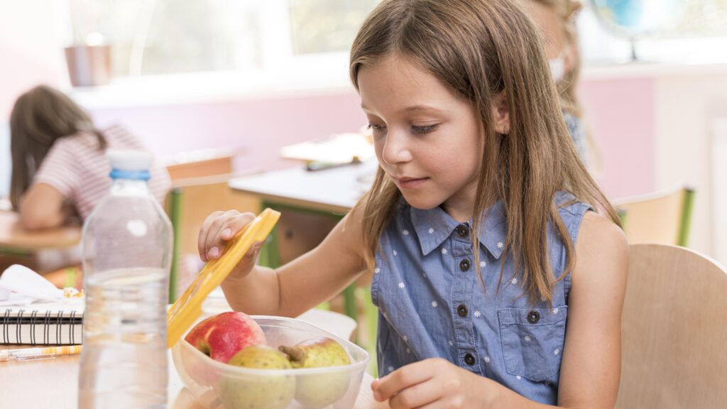 Zu fett und zu süß soll das Frühstück nicht ausfallen, sonst sinkt der Blutzuckerspiegel rasch wieder ab und die Kleinen werden müde. Diesem Marmeladentief kann man vorbeugen, wenn das Frühstück eher kohlenhydratreich Vollkornbrot oder Müsli ist. Eine kleine Zwischenmahlzeit am Vormittag erhöht die Leistungsfähigkeit auch für den Nachmittag. Mittags eher eiweißreich, nicht zu fett und zu viel essen, damit die Verdauung nicht zu sehr belastet ist. Nach einer Zwischenmahlzeit am Nachmittag können Kinder abends wieder etwas kohlenhydratreicher essen.
